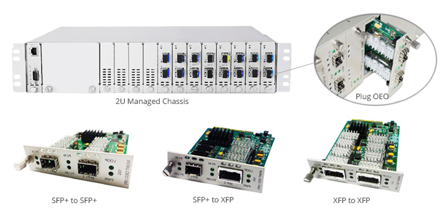 GEZHI Photonics can also provide 2U Unified Platefrom Chassis for 10G OEO Card. Each card (10G SFP+ to SFP+, 10G XFP to SFP+,10G XFP to XFP ) can coexist together in this 2U 17-slot Managed chassis.